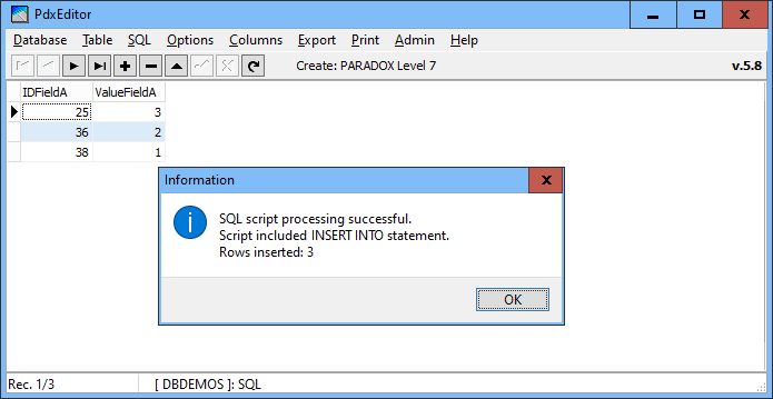Connected to a BDE Alias database: